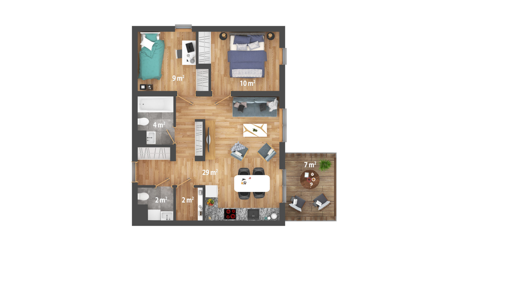 Saliena’s general plan was designed to provide for all amenities: it includes jointly used territories, recreation zones, sportsfields and spaces where residents can relax during their free time. Residential and business zones have been planned correctly. It also provides easy access to teaching institutions and entertainment complexes.